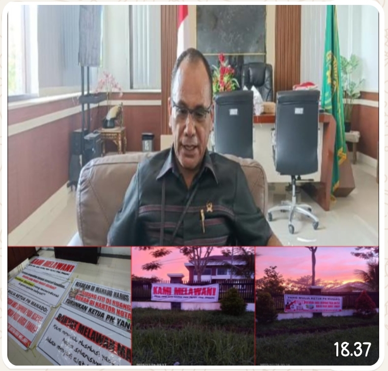 Sekitar pukul 05.00 WITA, dua unit Avanza tanpa plat jelas bergerak perlahan memasuki area kantor PN Manado. Dari kendaraan itu, beberapa orang turun dan dengan cepat memasang sejumlah spanduk berisi kalimat provokatif dan ancaman langsung yang ditujukan kepada Ketua Pengadilan.
