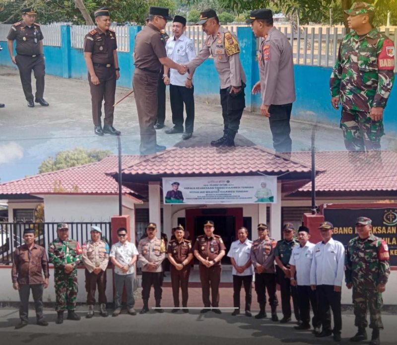 Kapolsek Tolitoli Utara IPTU Abd. Rahman Ali bersama unsur Forkopimda menyambut kunjungan kerja Kepala Kejaksaan Tinggi Sulawesi Tengah, Nuzul Rahmat, S.H., M.H, beserta rombongan di Kantor Cabang Kejaksaan Negeri Tolitoli di Laulalang, Rabu (15/04/2026) pukul 09.00 WITA.