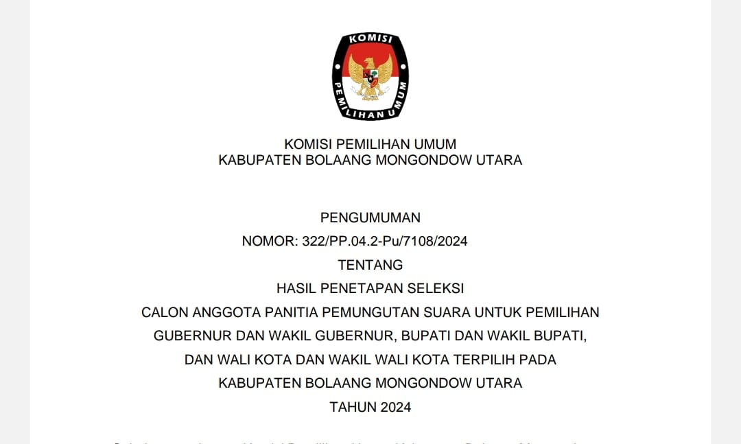 Bolmut, Globalnewnusantara.id – Berdasarkan Keputusan KPU nomor : 322/PP.04.2-Pu/7108/2024, Tentang Hasil Penetapan Seleksi Calon Anggota PPS untuk Pemilihan Gubernur dan Wakil Gubernur, Bupati dan…